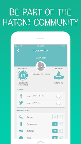 Haton? is a community weather app and makes extensive use of crowdsourced weather data directly from users. Users of Haton? enter into the app how the weather conditions feel where they are right now and this data is interpreted and processed by Haton? to support forecasting of weather for other users of the app.